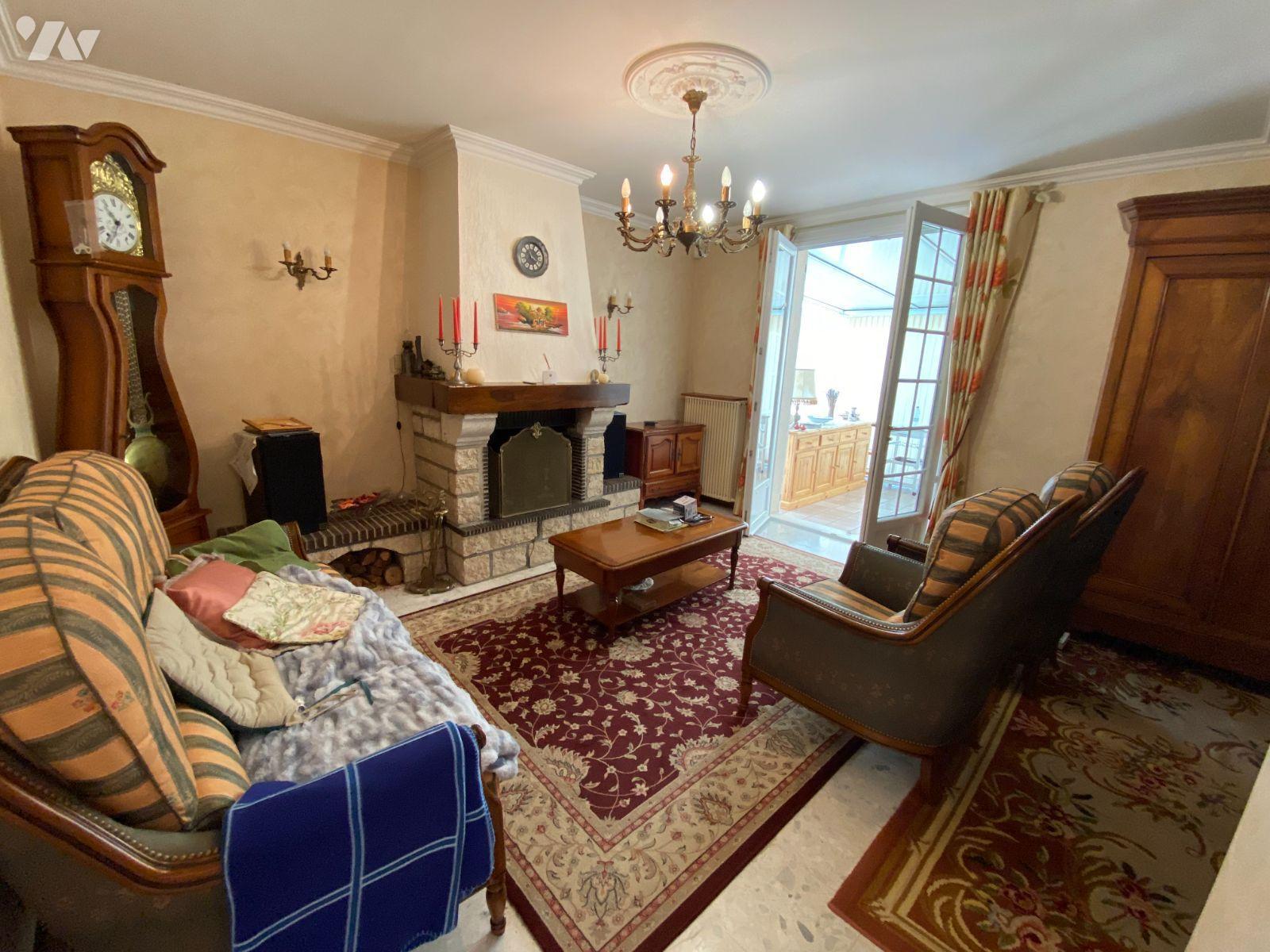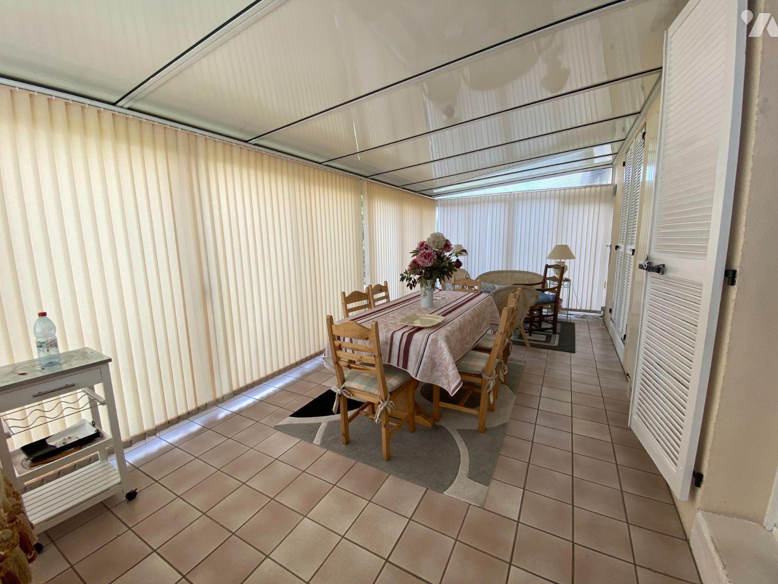 Au rdc : entrée, séjour- salon avec cheminée et donnant sur la véranda de 26 m2, cuisine équipée, dégagement desservant salle d'eau, wc et 2 chambres.